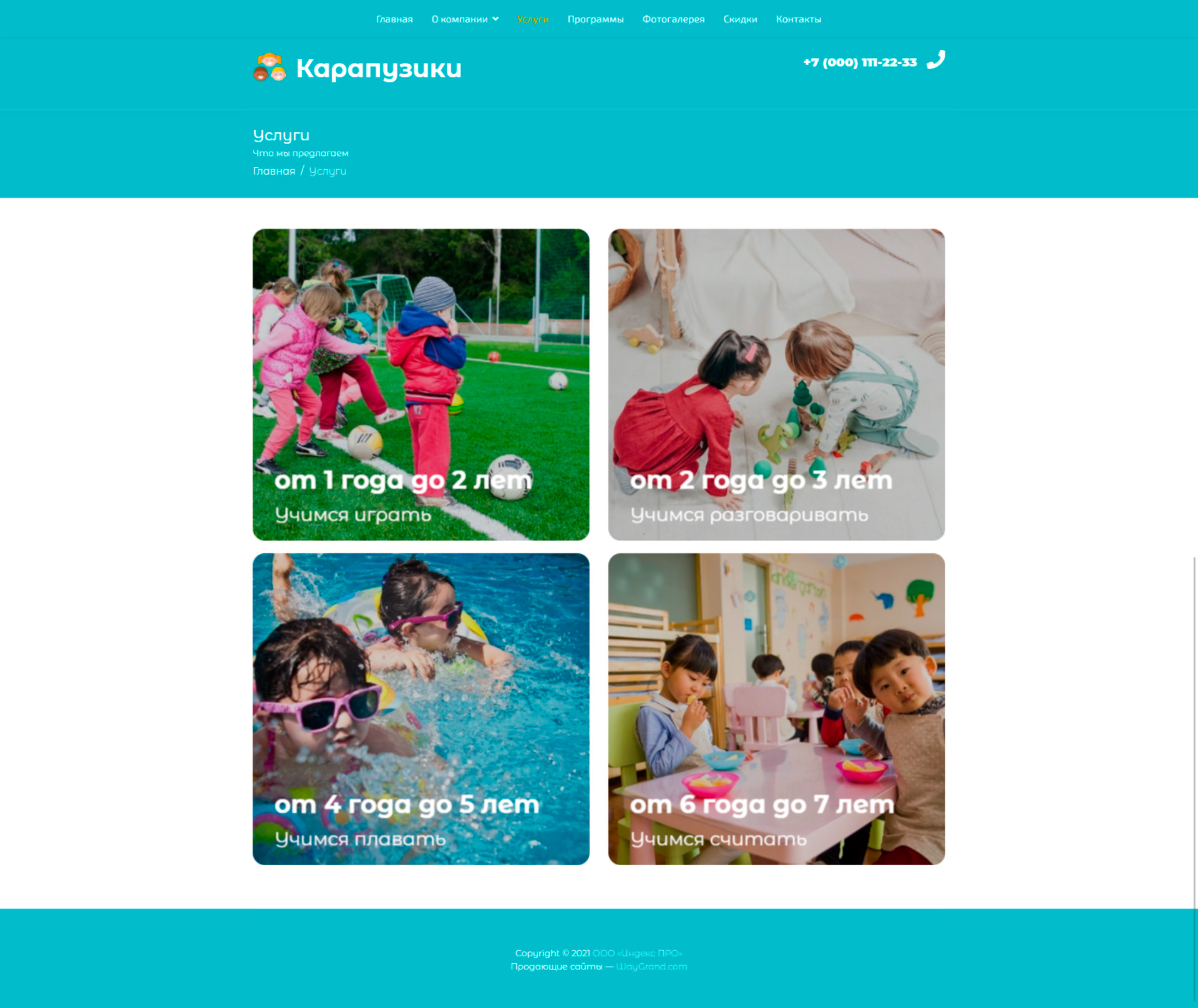 Закажите готовый продающий сайт визитка #0419301 в Артёме за 5-7 дня «под ключ»: свёрстан, отрисован и готов к рекламе. Тематика шаблона «Частный детский центр».