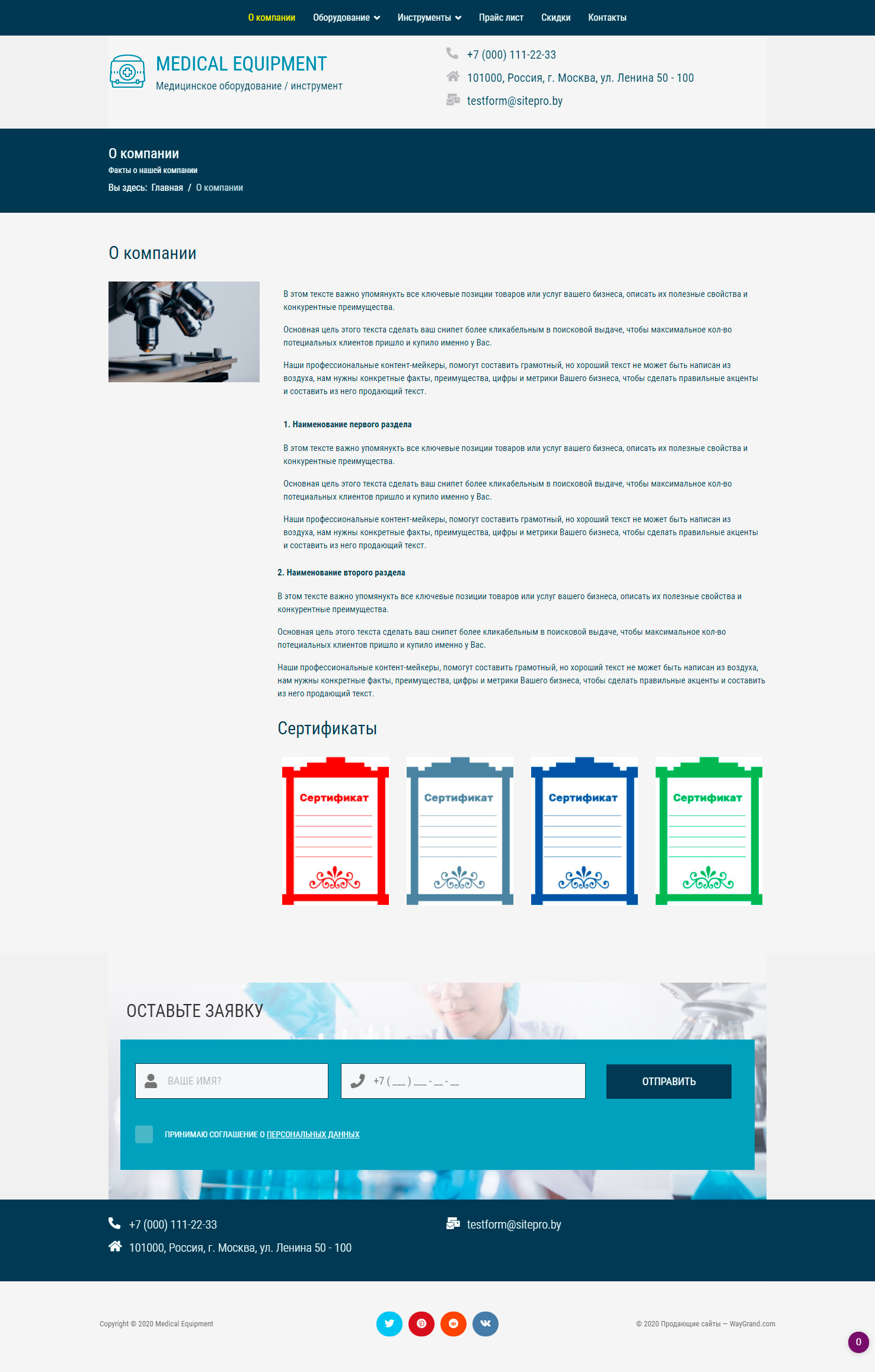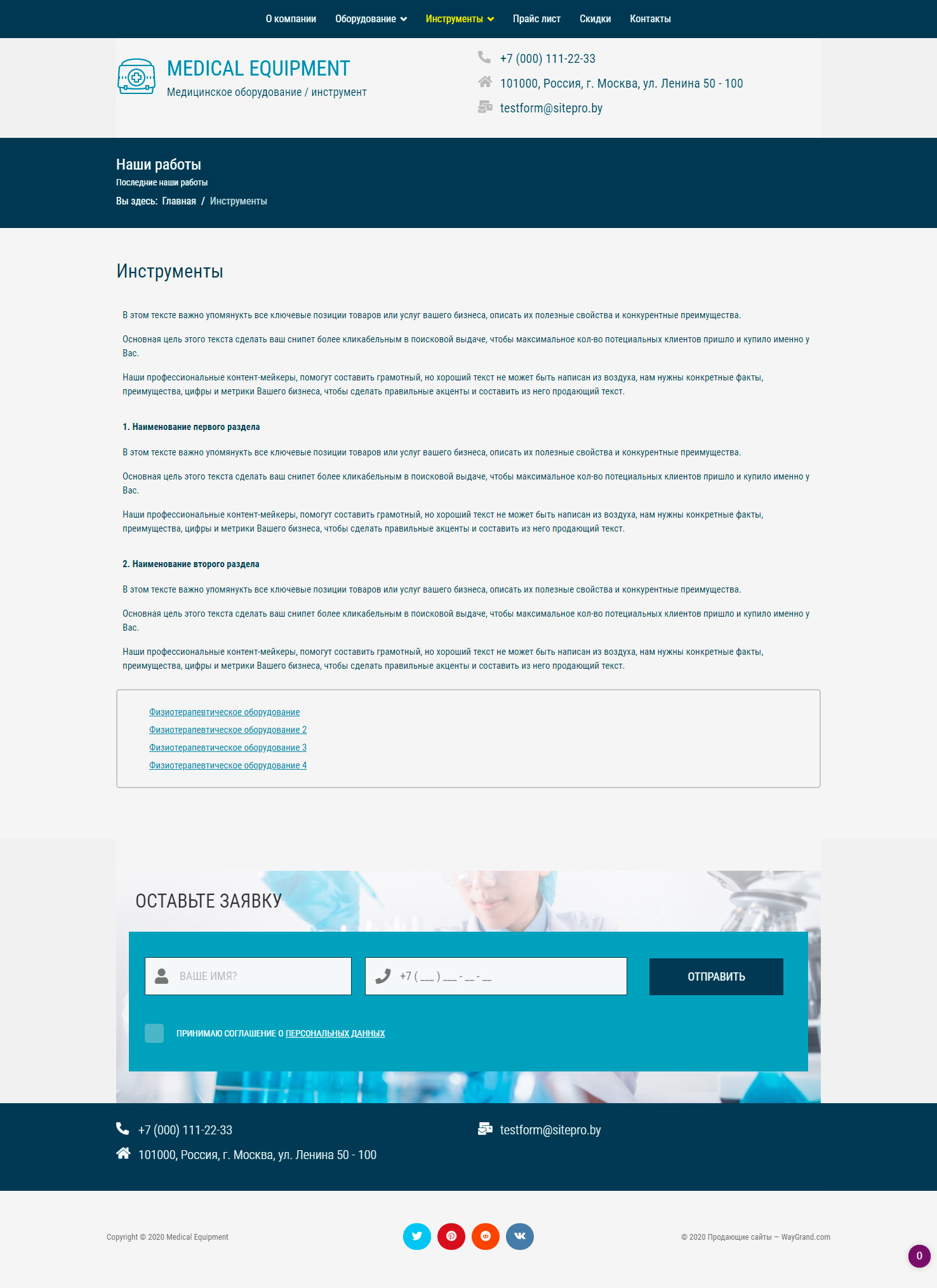 Закажите готовый продающий сайт визитка #1029301 в Артёме за 5-7 дня «под ключ»: свёрстан, отрисован и готов к рекламе. Тематика шаблона «Медицинское оборудование / инструмент».